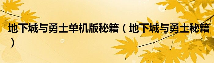 大家好,雨雨来为大家解答以上问题,地下城与勇士单机版秘籍,地下城与勇士秘籍很多人还不知道,现在让我们一起来看看吧!
