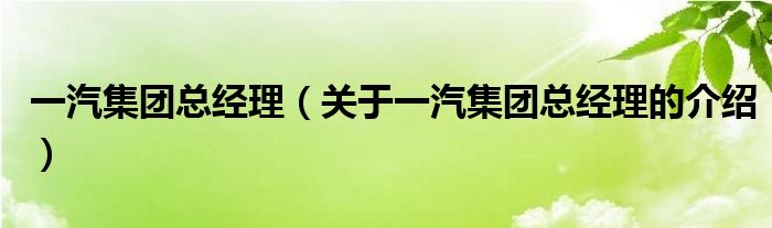 大家好,今天小乐来为大家解答以上的问题。一汽集团总经理,关于一汽集团总经理的介绍很多人还不知道,现在让我们一起来看看吧!