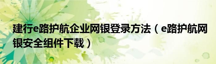 大家好,雨雨来为大家解答以上问题,建行e路护航企业网银登录方法,e路护航网银安全组件下载很多人还不知道,现在让我们一起来看看吧!