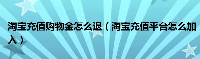 大家好,雨雨来为大家解答以上问题,淘宝充值购物金怎么退,淘宝充值平台怎么加入很多人还不知道,现在让我们一起来看看吧!