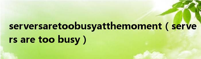 大家好,雨雨来为大家解答以上问题,serversaretoobusyatthemoment,servers are too busy很多人还不知道,现在让我们一起来看看吧!