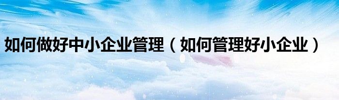 关于如何做好中小企业管理,如何管理好小企业这个很多人还不知道,今天菲菲来为大家解答以上的问题,现在让我们一起来看看吧!