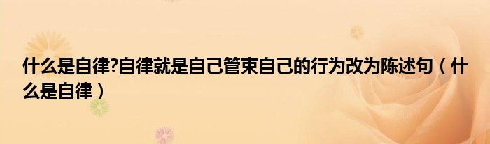 关于什么是自律?自律就是自己管束自己的行为改为陈述句,什么是自律这个很多人还不知道,今天菲菲来为大家解答以上的问题,现在让我们一起来看看吧!