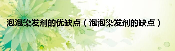 大家好,小晋来为大家解答以下问题,关于泡泡染发剂的优缺点,泡泡染发剂的缺点很多人还不知道,今天让我们一起来看看吧!