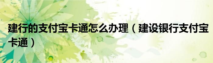 大家好,雨雨来为大家解答以上问题,建行的支付宝卡通怎么办理,建设银行支付宝卡通很多人还不知道,现在让我们一起来看看吧!
