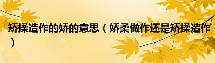 大家好,小晋来为大家解答以下问题,关于矫揉造作的娇的意思,娇柔做作还是矫揉造作很多人还不知道,今天让我们一起来看看吧!