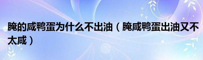 关于腌的咸鸭蛋为什么不出油,腌咸鸭蛋出油又不太咸这个很多人还不知道,今天菲菲来为大家解答以上的问题,现在让我们一起来看看吧!