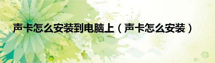 1、声卡怎么安装