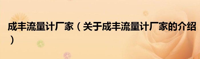 大家好,今天小乐来为大家解答以上的问题。成丰流量计厂家,关于成丰流量计厂家的介绍很多人还不知道,现在让我们一起来看看吧!