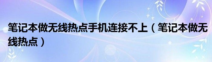 大家好,雨雨来为大家解答以上问题,笔记本做无线热点手机连接不上,笔记本做无线热点很多人还不知道,现在让我们一起来看看吧!