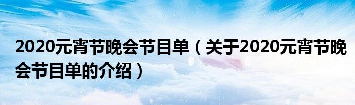 2020元宵节晚会节目单(关于2020元宵节晚会节目单的介绍)