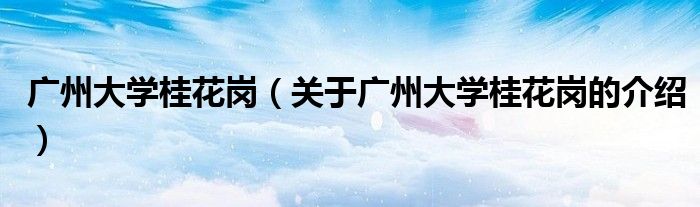 大家好,今天小乐来为大家解答以上的问题。广州大学桂花岗,关于广州大学桂花岗的介绍很多人还不知道,现在让我们一起来看看吧!