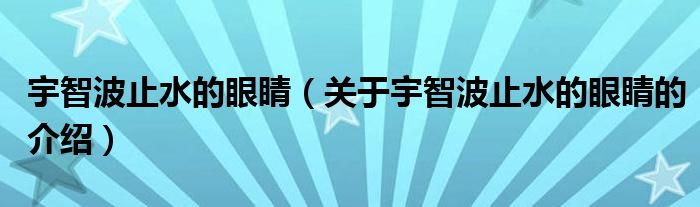 大家好,今天小乐来为大家解答以上的问题。宇智波止水的眼睛,关于宇智波止水的眼睛的介绍很多人还不知道,现在让我们一起来看看吧!