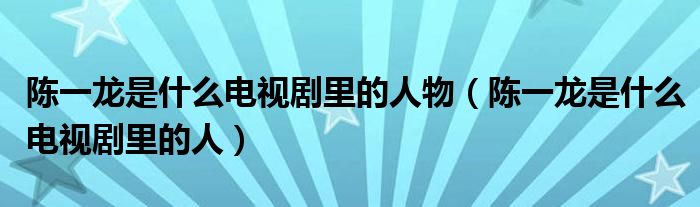 陈一龙是什么电视剧里的人物(陈一龙是什么电视剧里的人)