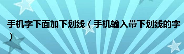 大家好,小晋来为大家解答以下问题,关于手机字下面加下划线,手机输入带下划线的字很多人还不知道,今天让我们一起来看看吧!