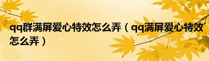 大家好,小晋来为大家解答以下问题,关于qq群满屏爱心特效怎么弄,qq满屏爱心特效怎么弄很多人还不知道,今天让我们一起来看看吧!