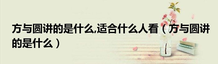 大家好,小晋来为大家解答以下问题,关于方与圆讲的是什么,适合什么人看,方与圆讲的是什么很多人还不知道,今天让我们一起来看看吧!