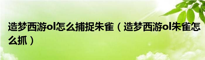 大家好,小晋来为大家解答以下问题,关于造梦西游ol怎么捕捉朱雀,造梦西游ol朱雀怎么抓很多人还不知道,今天让我们一起来看看吧!