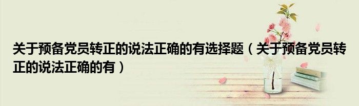 关于关于预备党员转正的说法正确的有选择题,关于预备党员转正的说法正确的有这个很多人还不知道,今天菲菲来为大家解答以上的问题,现在让我们一起来看看吧!