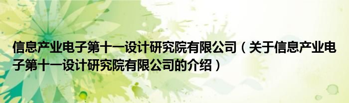 信息产业电子第十一设计研究院有限公司(关于信息产业电子第十一设计研究院有限公司的...