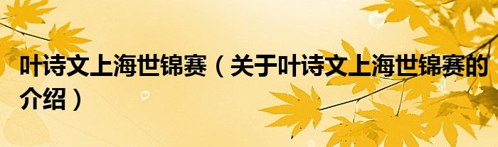 叶诗文上海世锦赛(关于叶诗文上海世锦赛的介绍)