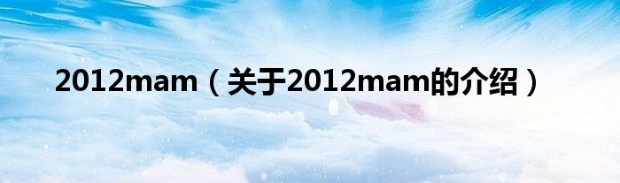 2012mam(关于2012mam的介绍)