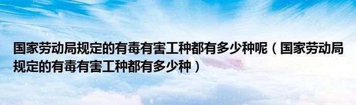 关于国家劳动局规定的有毒有害工种都有多少种呢,国家劳动局规定的有毒有害工种都有多少种这个很多人还不知道,今天菲菲来为大家解答以上的问题,现在让我们一起来看看吧!