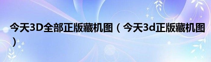 关于今天3D全部正版藏机图,今天3d正版藏机图这个很多人还不知道,今天菲菲来为大家解答以上的问题,现在让我们一起来看看吧!