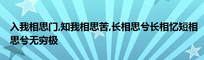 关于入我相思门,知我相思苦,长相思兮长相忆短相思兮无穷极这个很多人还不知道,今天菲菲来为大家解答以上的问题,现在让我们一起来看看吧!