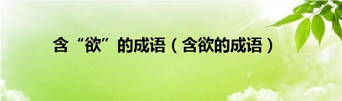 关于含“欲”的成语,含欲的成语这个很多人还不知道,今天菲菲来为大家解答以上的问题,现在让我们一起来看看吧!