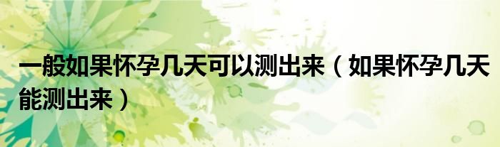 关于一般如果怀孕几天可以测出来,如果怀孕几天能测出来这个很多人还不知道,今天菲菲来为大家解答以上的问题,现在让我们一起来看看吧!