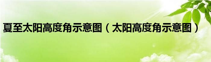 关于夏至太阳高度角示意图,太阳高度角示意图这个很多人还不知道,今天菲菲来为大家解答以上的问题,现在让我们一起来看看吧!