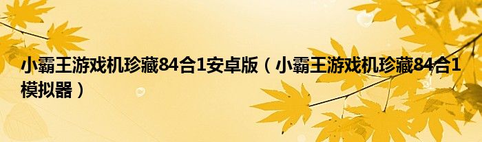 关于小霸王游戏机珍藏84合1安卓版,小霸王游戏机珍藏84合1模拟器这个很多人还不知道,今天菲菲来为大家解答以上的问题,现在让我们一起来看看吧!