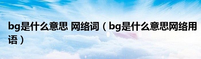 bg是什么意思 网络词(bg是什么意思网络用语)