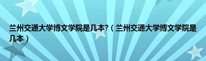 兰州交通大学博文学院是几本?(兰州交通大学博文学院是几本)