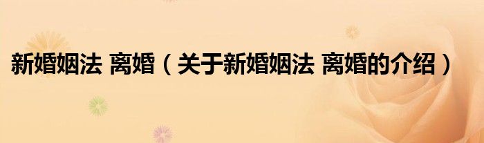 新婚姻法离婚(关于新婚姻法离婚的介绍)