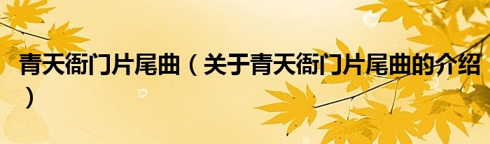 青天衙门片尾曲(关于青天衙门片尾曲的介绍)