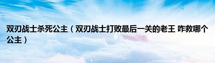 双刃战士杀死公主(双刃战士打败最后一关的老王咋救哪个公主)