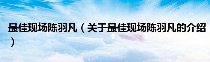 最佳现场陈羽凡(关于最佳现场陈羽凡的介绍)