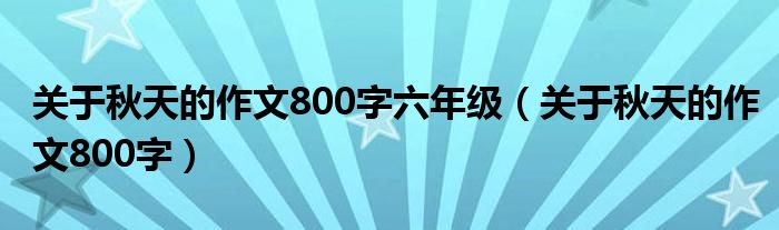 关于关于秋天的作文800字六年级,关于秋天的作文800字这个很多人还不知道,今天菲菲来为大家解答以上的问题,现在让我们一起来看看吧!