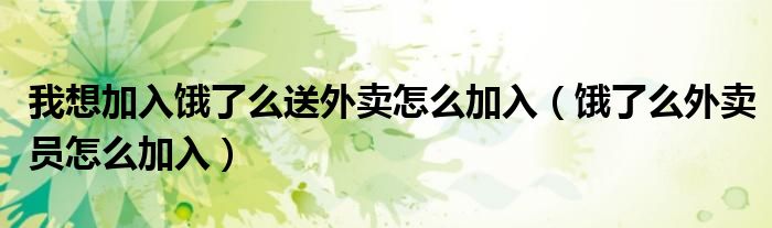 大家好,小晋来为大家解答以下问题,关于我想加入饿了么送外卖怎么加入,饿了么外卖员怎么加入很多人还不知道,今天让我们一起来看看吧!