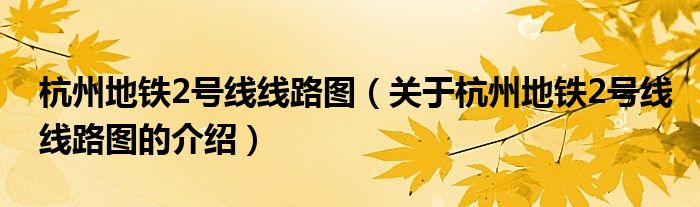 1、杭州地铁2号线是杭州地铁第二条开通的地铁线路,于2014年11月24日正式运营,标志色为丹桂橙色。