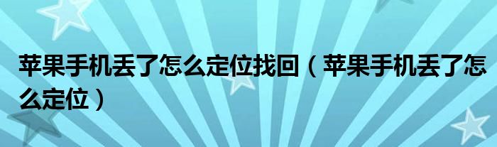 大家好,雨雨来为大家解答以上问题,苹果手机丢了怎么定位找回,苹果手机丢了怎么定位很多人还不知道,现在让我们一起来看看吧!