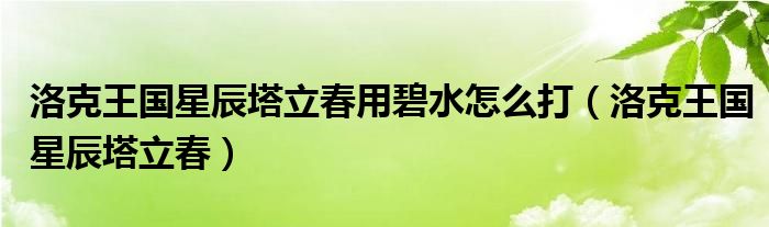 大家好,小晋来为大家解答以下问题,关于洛克王国星辰塔立春用碧水怎么打,洛克王国星辰塔立春很多人还不知道,今天让我们一起来看看吧!
