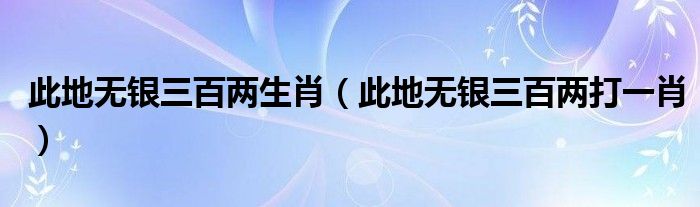 此地无银三百两生肖(此地无银三百两打一肖)