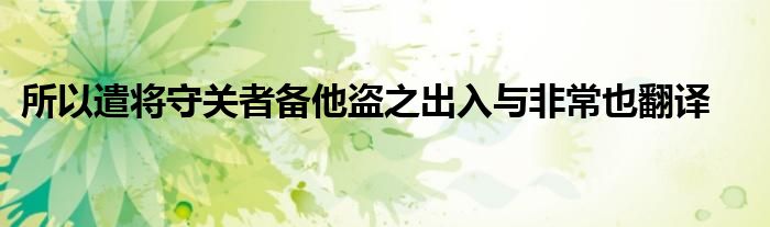 关于所以遣将守关者备他盗之出入与非常也翻译这个很多人还不知道,今天菲菲来为大家解答以上的问题,现在让我们一起来看看吧!