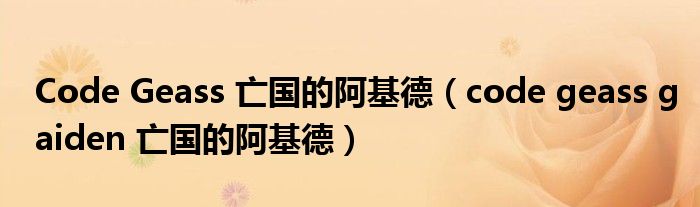Code Geass 亡国的阿基德,code geass gaiden 亡国的阿基德这个很多人还不知道,小飞来为大家解答以上的问题。现在让我们一起来看看吧!