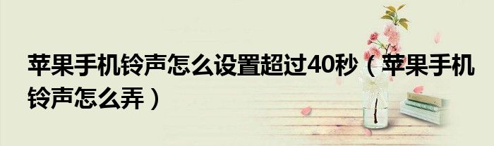 大家好,小飞来为大家解答以上问题,苹果手机铃声怎么设置超过40秒,苹果手机铃声怎么弄很多人还不知道,现在让我们一起来看看吧!
