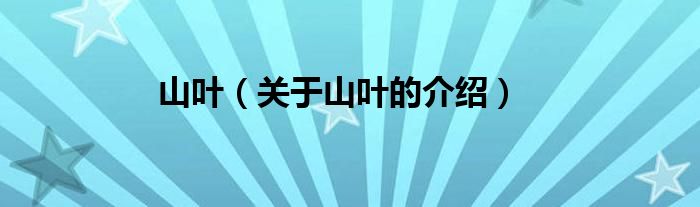 大家好,小都来为大家解答以上的问题。山叶,关于山叶的介绍很多人还不知道,现在让我们一起来看看吧!