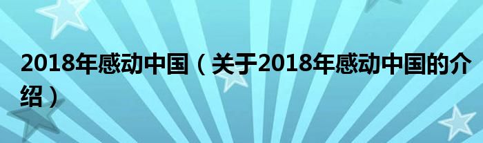1、《感动中国2018年度人物》是在中央电视台《感动中国》栏目组主办的2018年度人物评选活动中,经过投票评选出的年度人物。